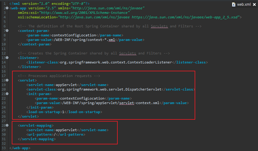 web.xml 에서 servlet 관련 설정 부분을 상세하게 확인해보면